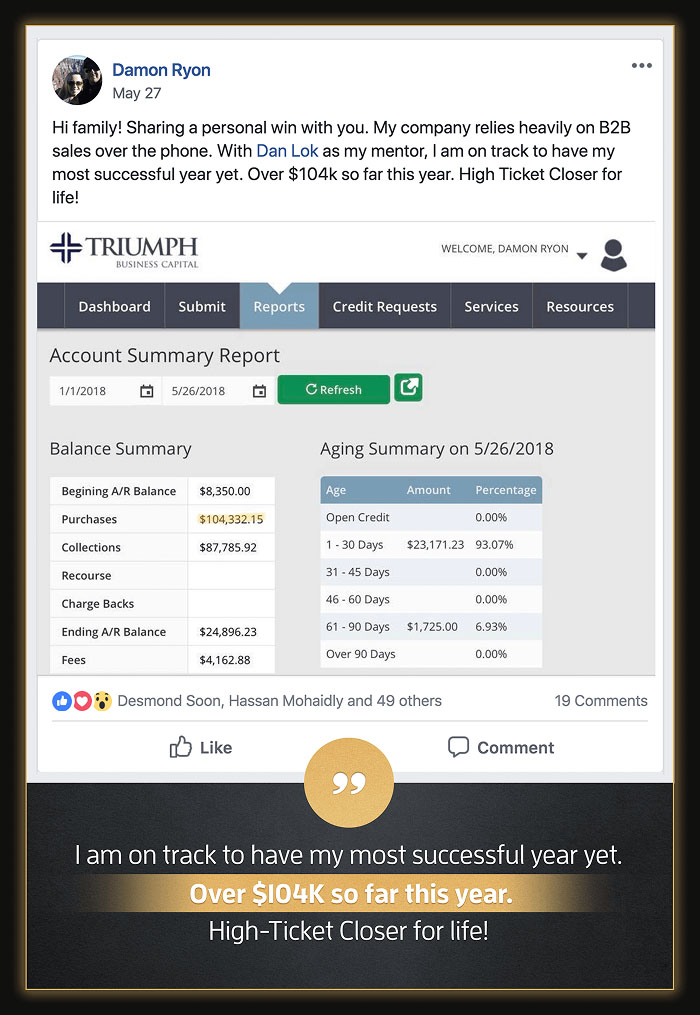 You’re assigned a hand-selected, Dan-trained closer who works with you directly throughout the program — helping you apply what you learn, refine your approach, and improve performance in real sales situations.