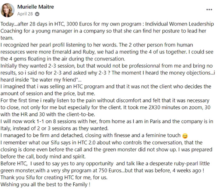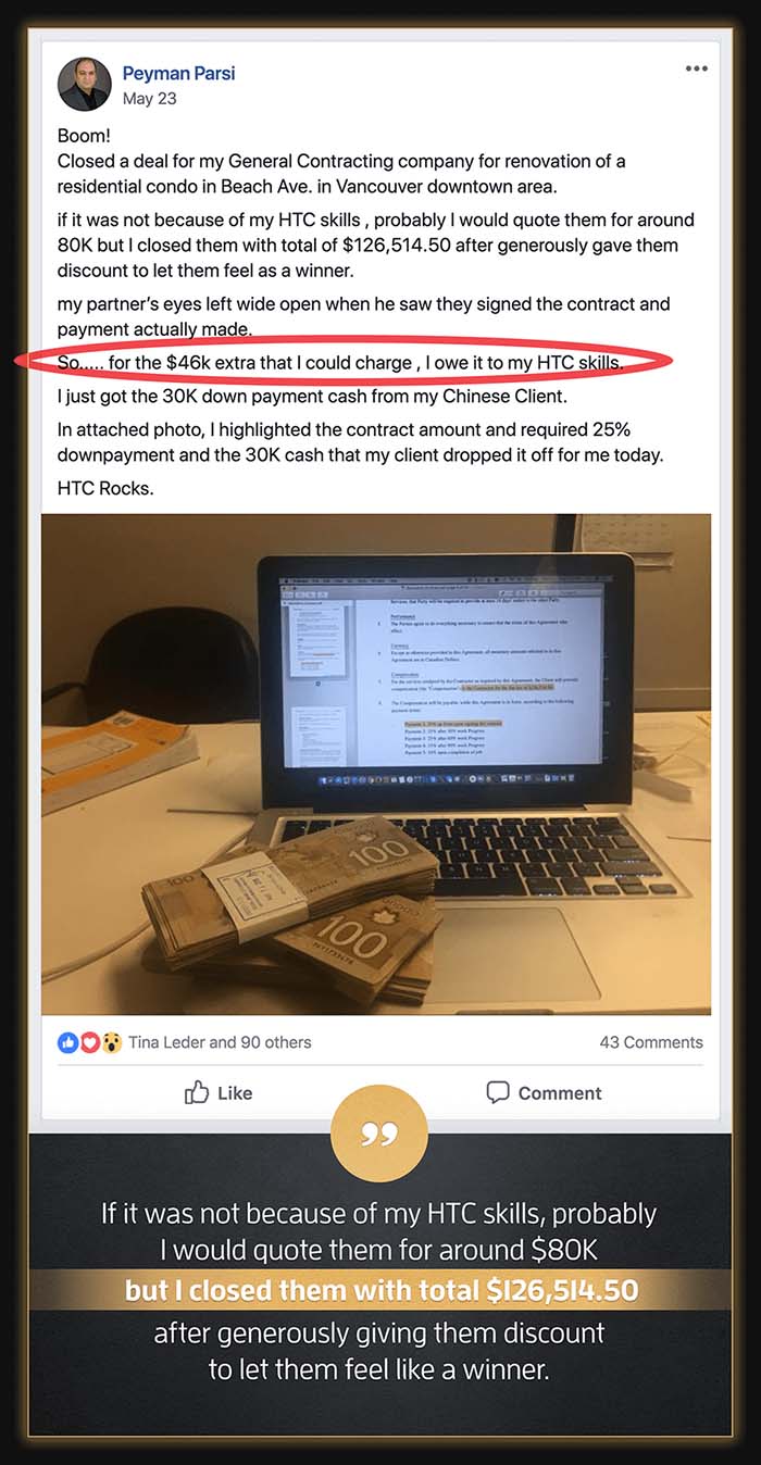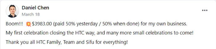 At the conclusion of HTC, your Coach will assist you through 5-attempts to earn an HTC Certification Badge. When you pass the 88-Question Certification exam you get a Digital and Physical version of the certificate to proudly display on your website, social media profiles, office desk or wall. Successful achievement of the HTC Certification certifies that you have learned the critical skills required to become a master of High Ticket Closing.
