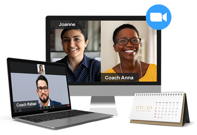 In addition to your Certified High Ticket Coach™, you’ll be paired with an Accountability Partner. Your accountability partner will hold you accountable to complete each learning module AND do the role plays, drills and practice exercises in HTC. Each 10-minute accountability session is designed to help you implement HTC faster.