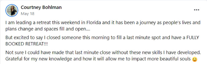 This is built around implementation. You’re not just learning what to do, you’re practicing it, refining it, and applying it in real scenarios with guidance. That’s the difference.